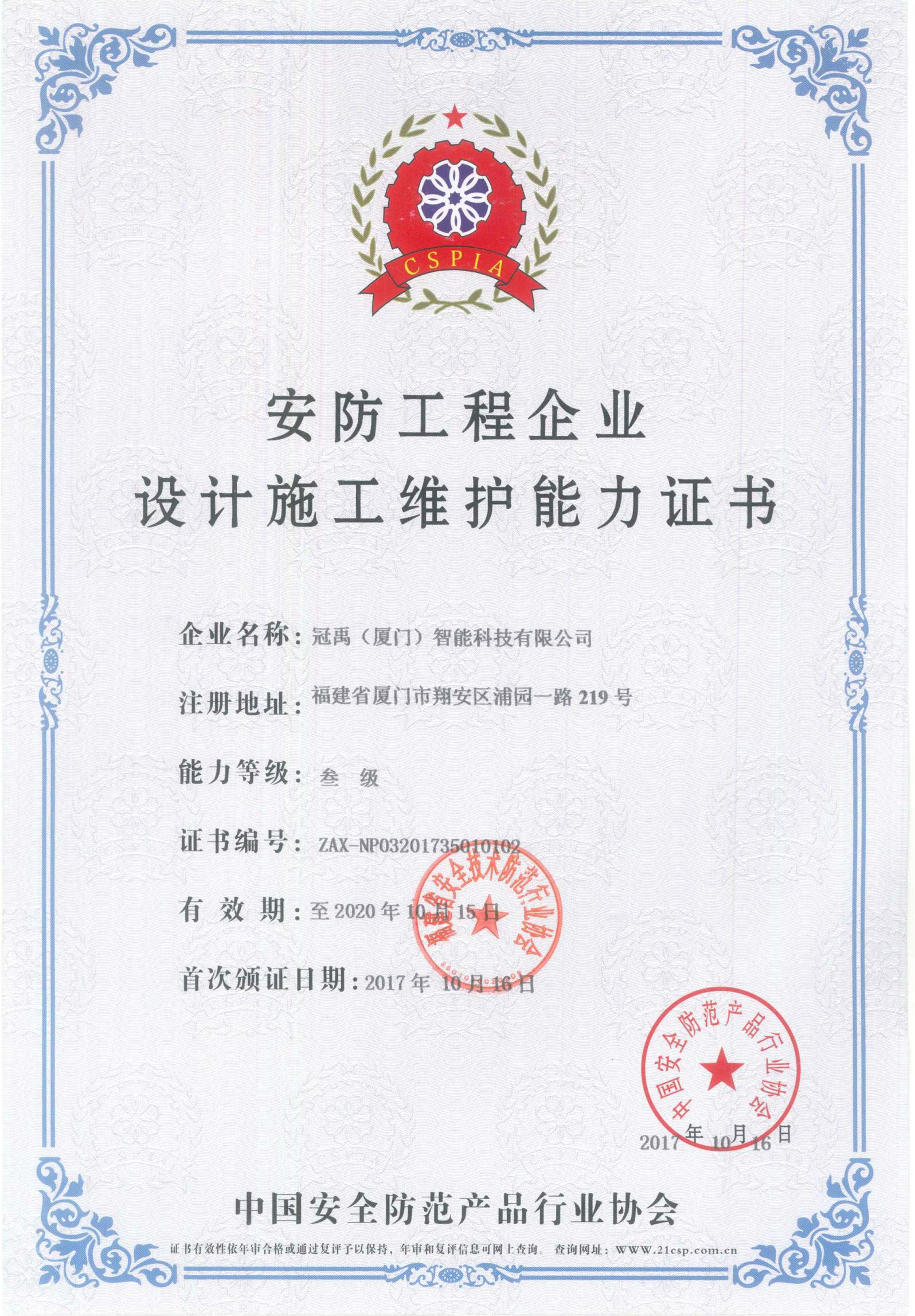 安防工程企業(yè)設(shè)計(jì)施工維護(hù)能力證書