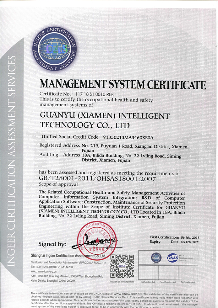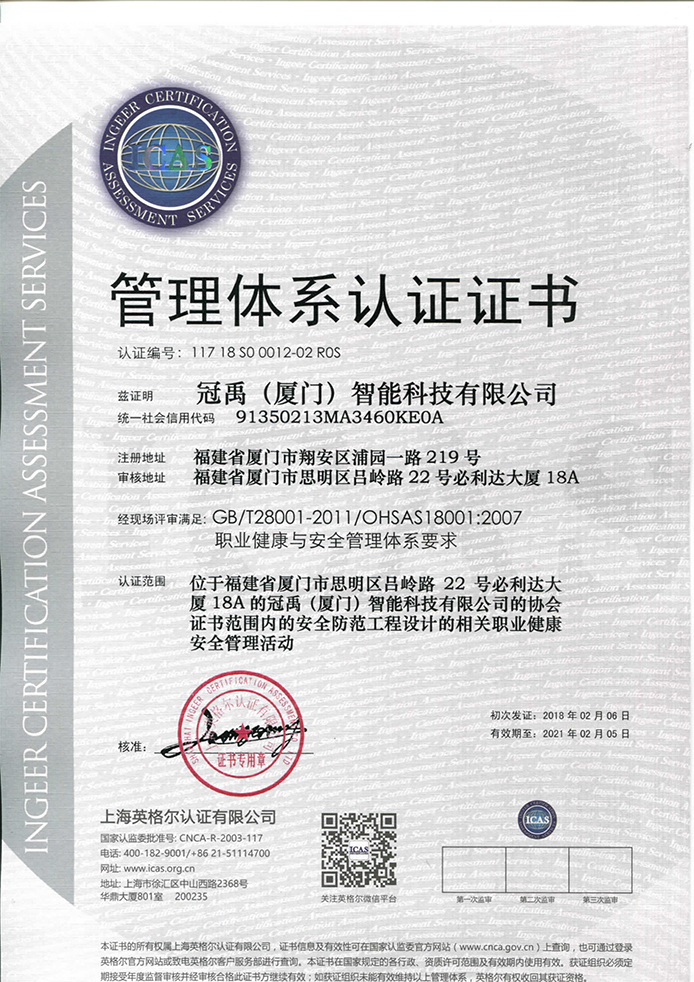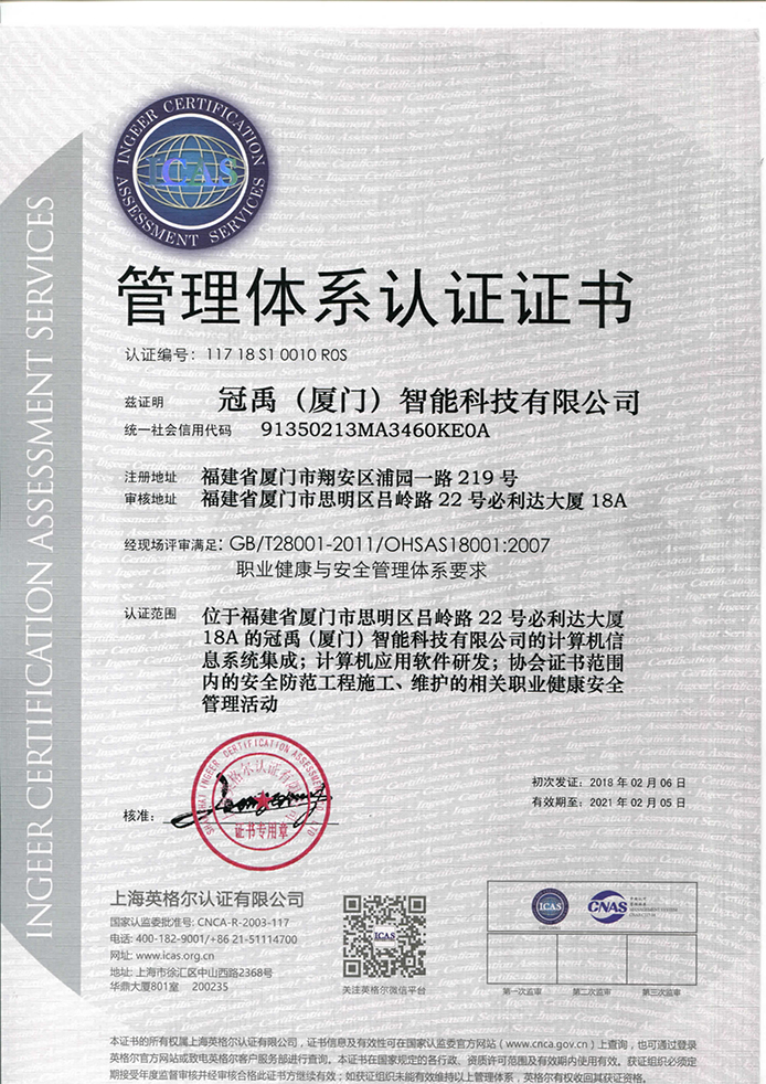 職業(yè)健康安全管理體系認(rèn)證證書1