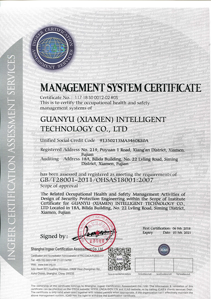 職業(yè)健康安全管理體系認(rèn)證證書2(英文)