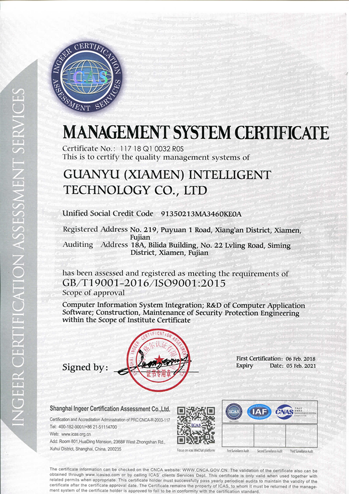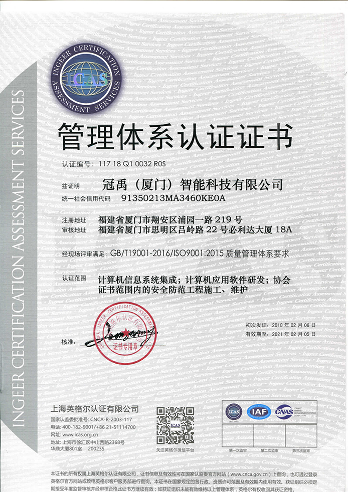 質(zhì)量管理體系認(rèn)證證書1(英文)